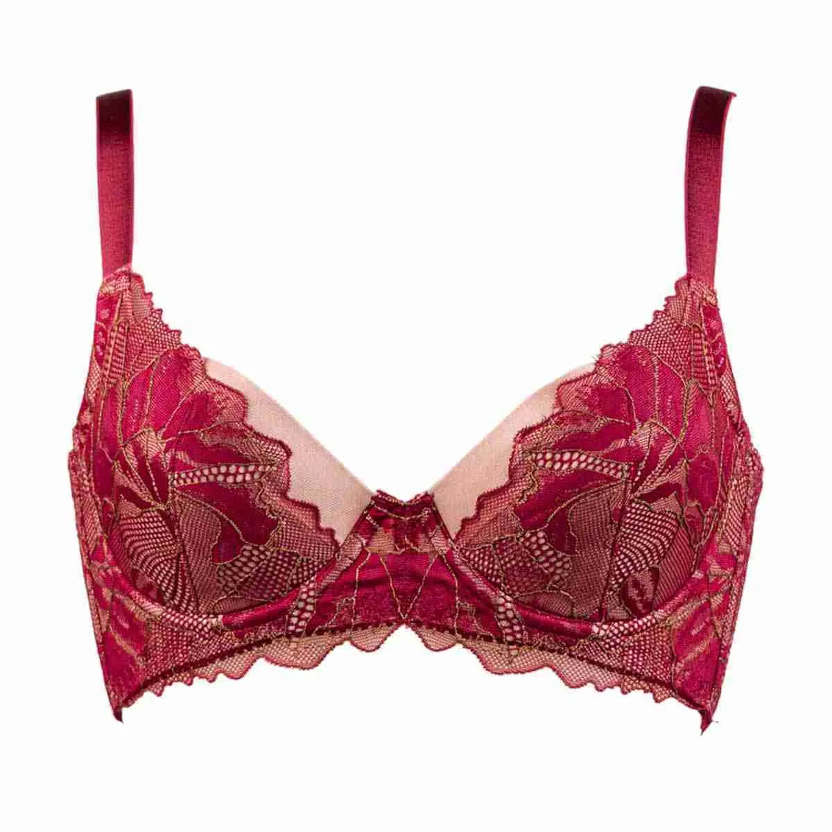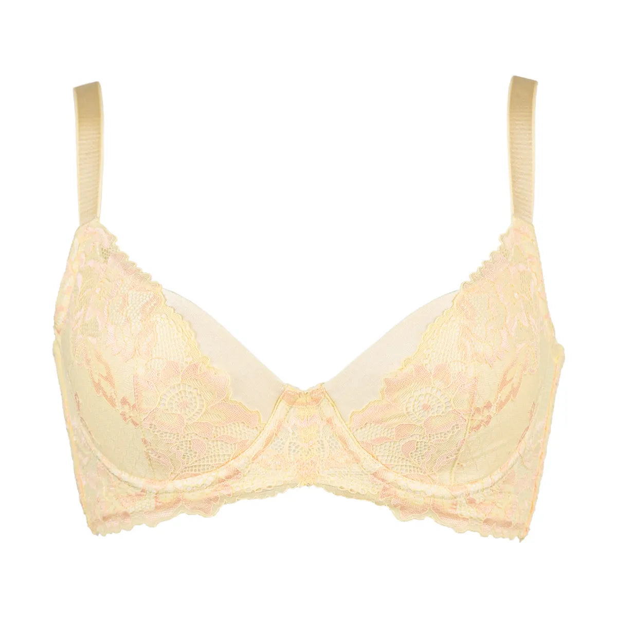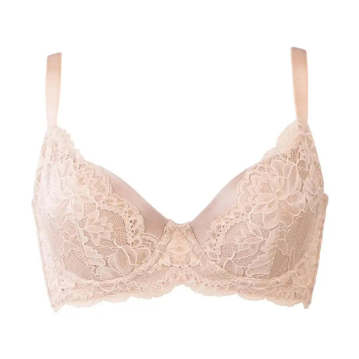 4枚接ぎ構造のサイドパネルとレース下に配置したパネルがWでおにくをキャッチ!中央に逃さず寄せてサイドすっきり綺麗なバストラインをつくります。
