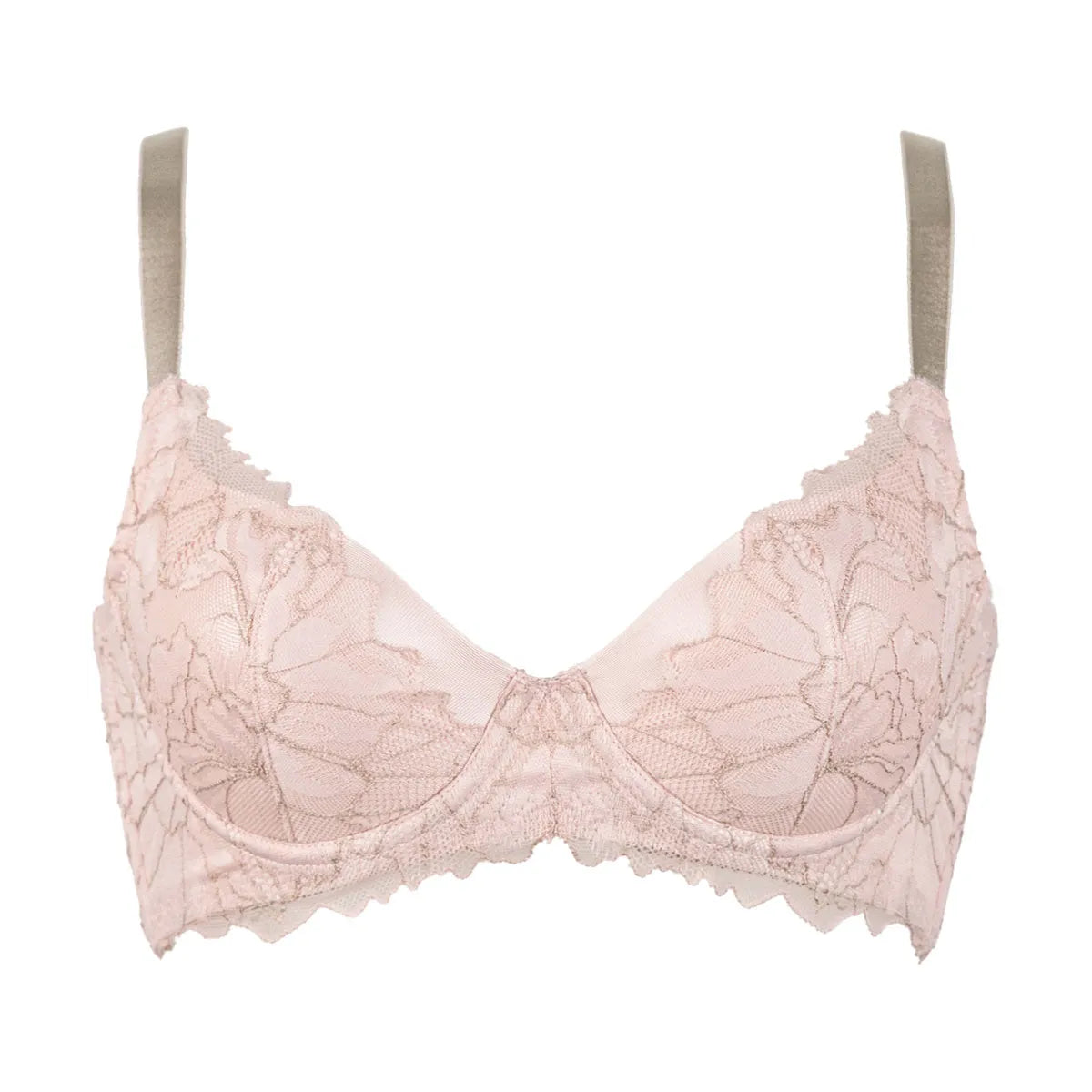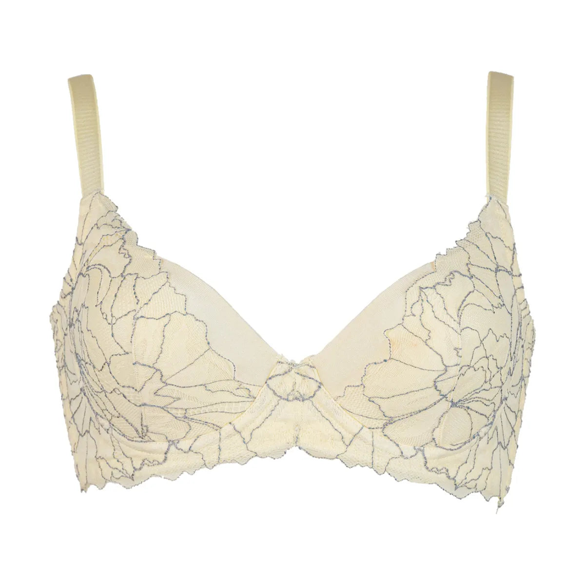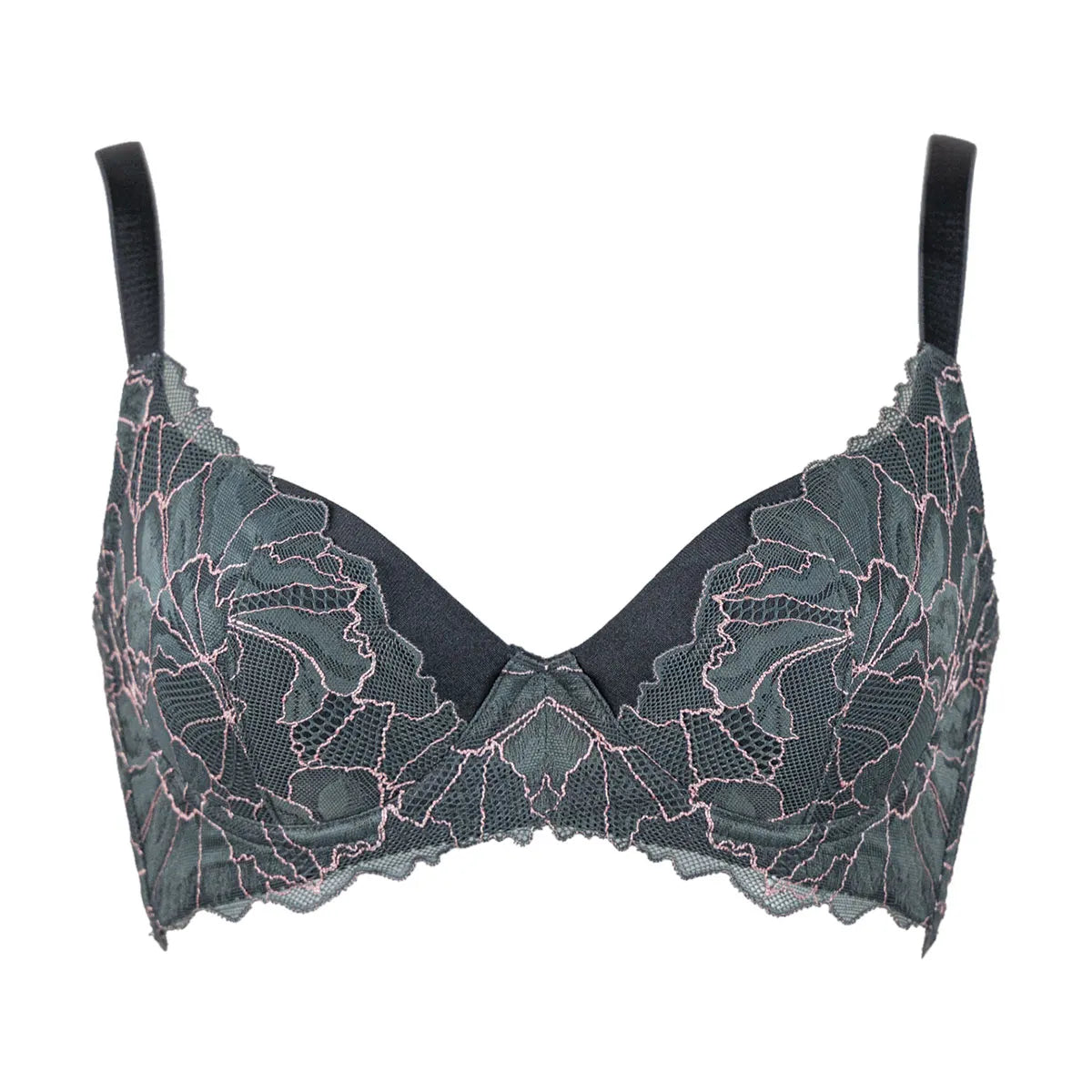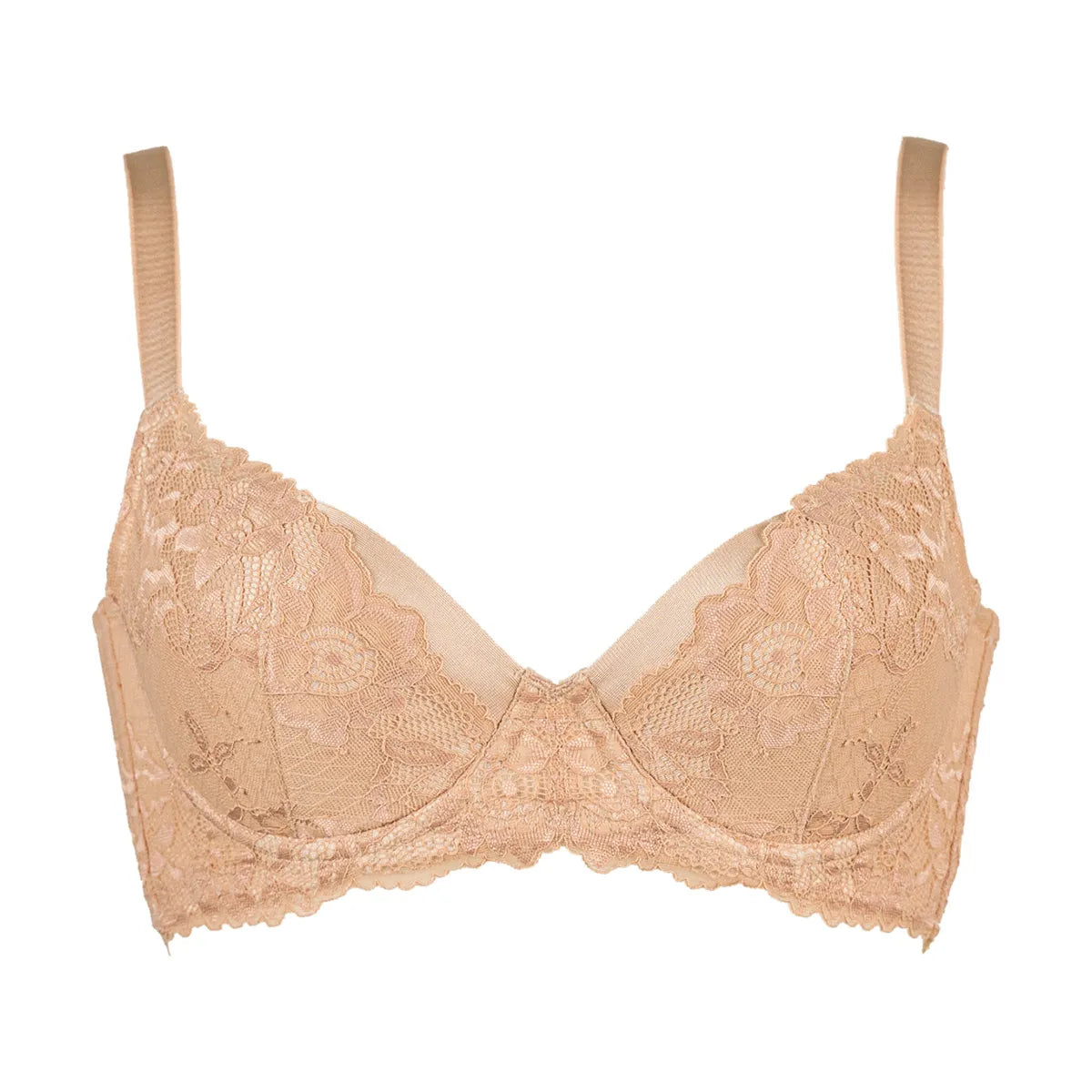 4枚接ぎ構造のサイドパネルとレース下に配置したパネルがWでおにくをキャッチ!中央に逃さず寄せてサイドすっきり綺麗なバストラインをつくります。