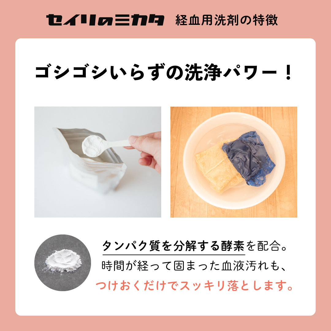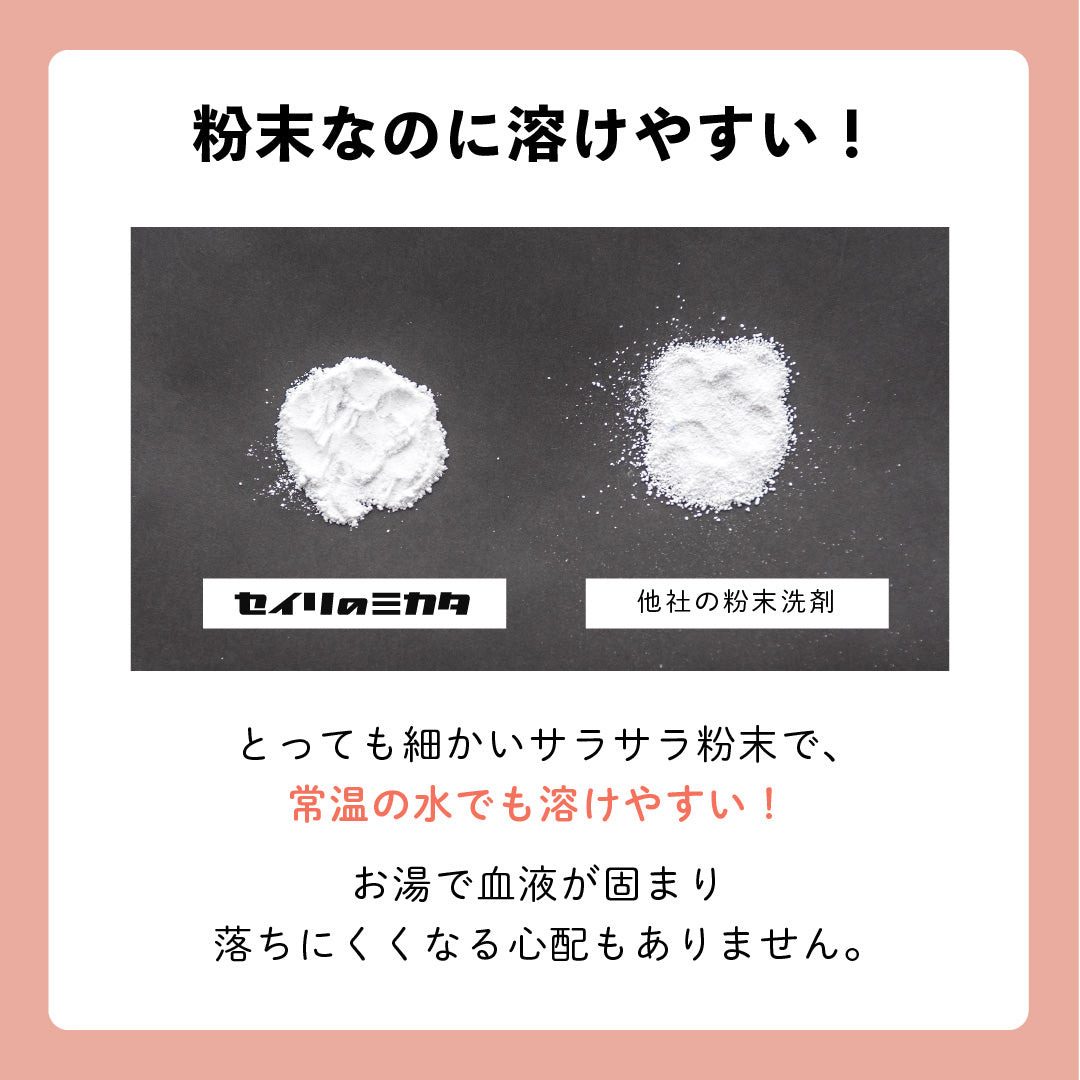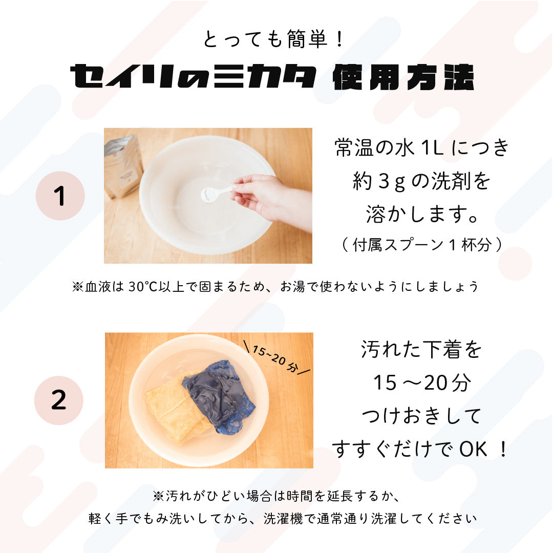 - セイリのミカタ粉末洗剤をご使用後、 ブラシャンをお使いになられる場合は、よくすすいでからご使用ください。