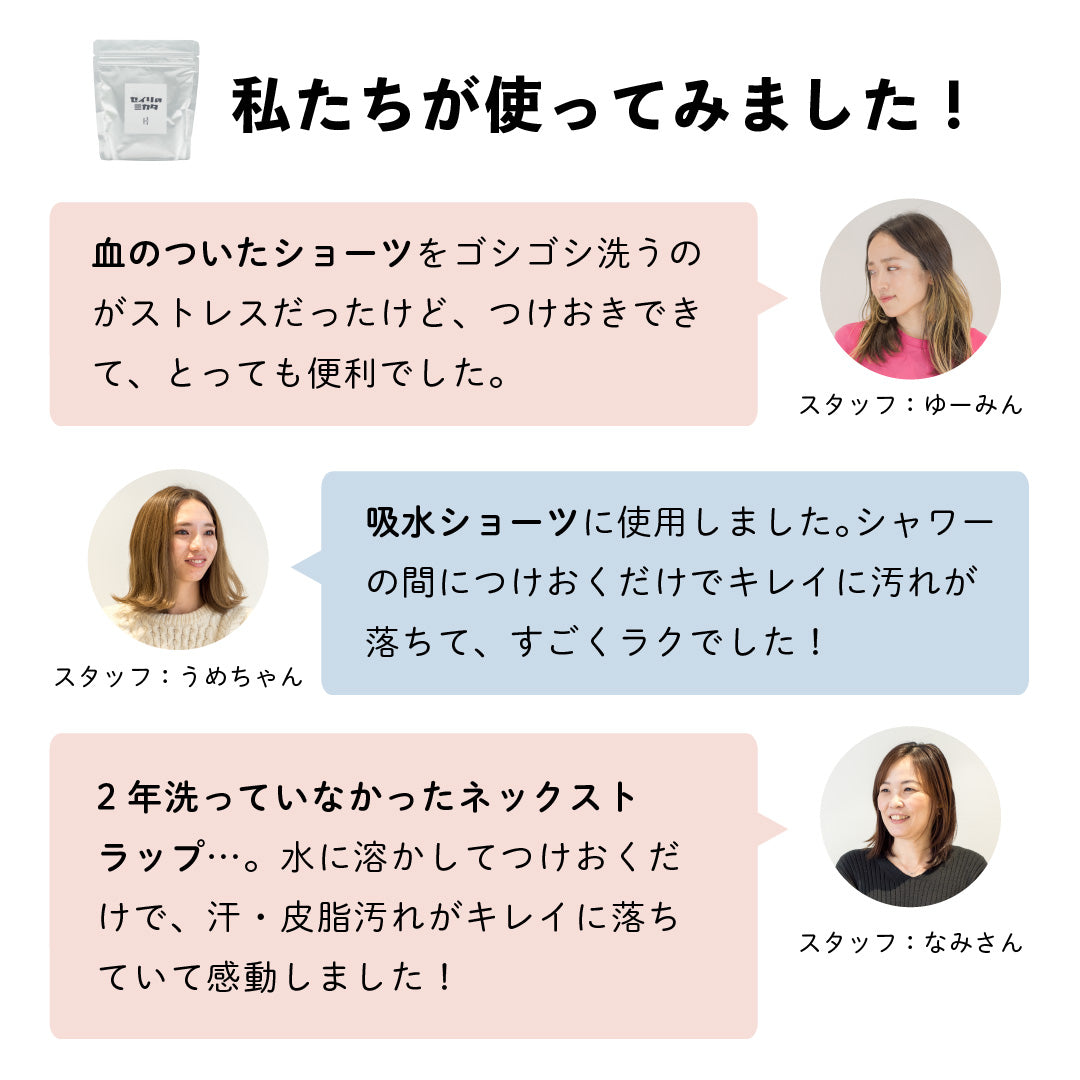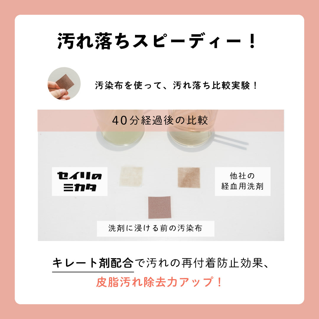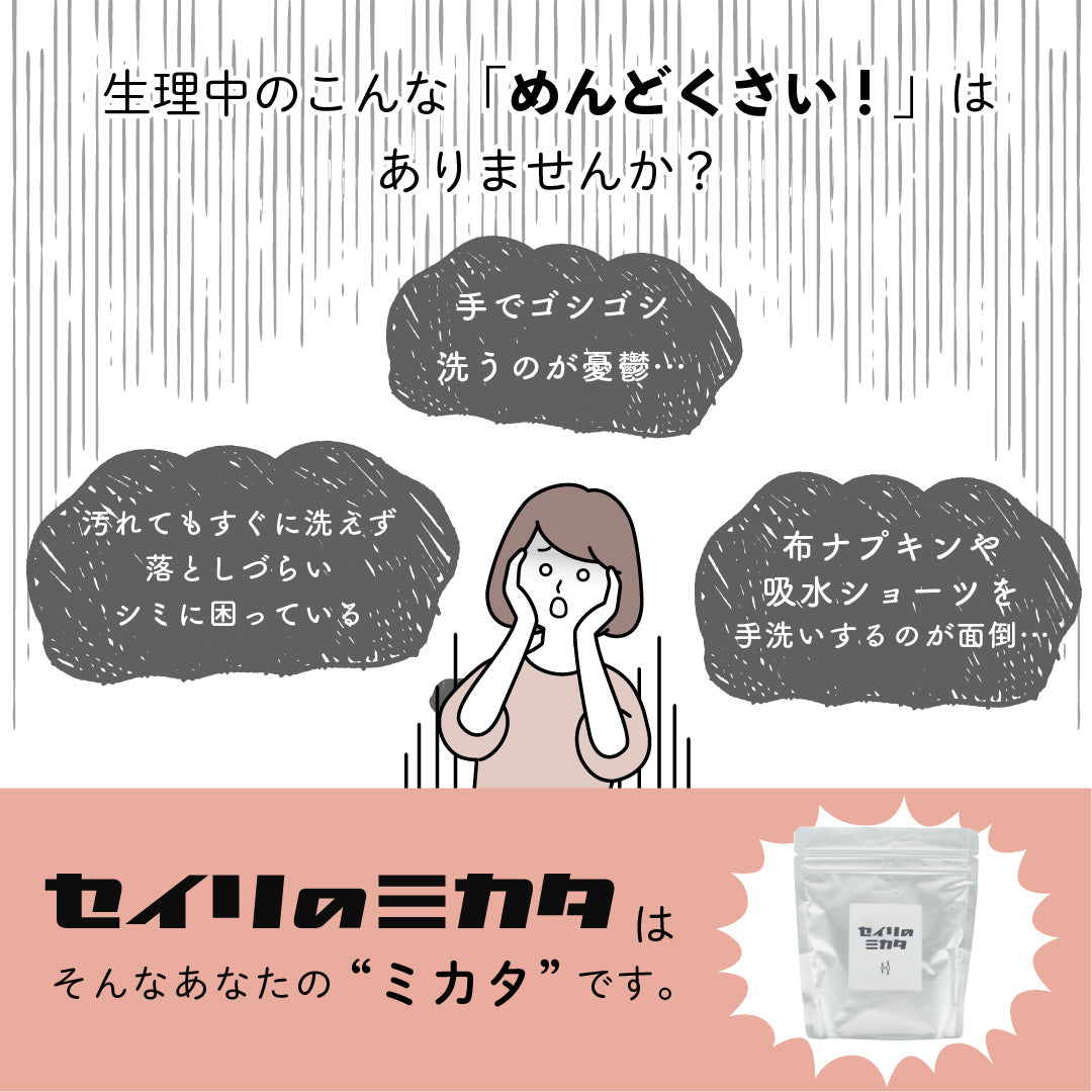 - セイリのミカタ粉末洗剤をご使用後、 ブラシャンをお使いになられる場合は、よくすすいでからご使用ください。